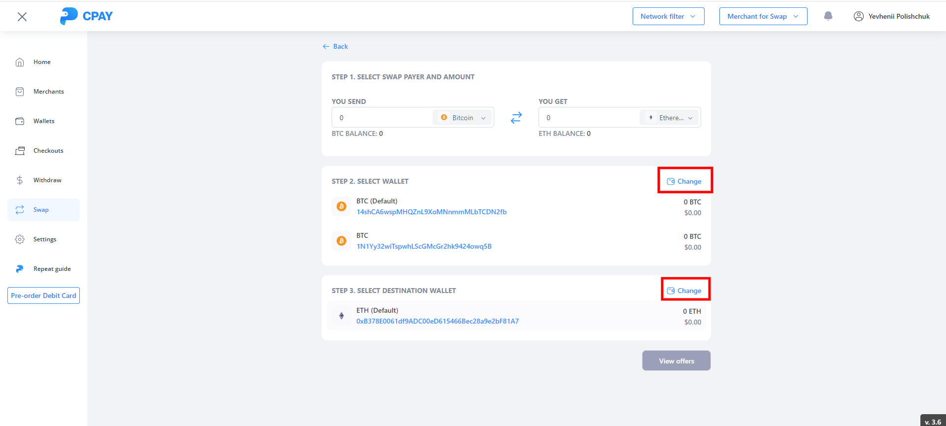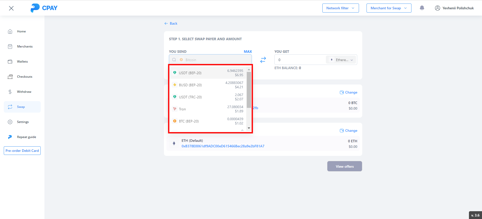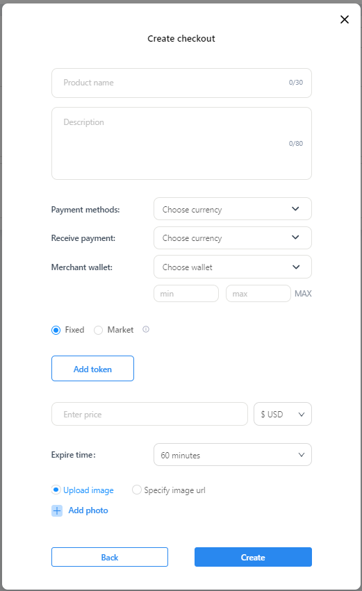 Max button - button to receive the maximum possible amount for sale. When receiving the amount, MinerFee and System Fee are taken into account, as well as already created checkouts based on the selected account wallet.
