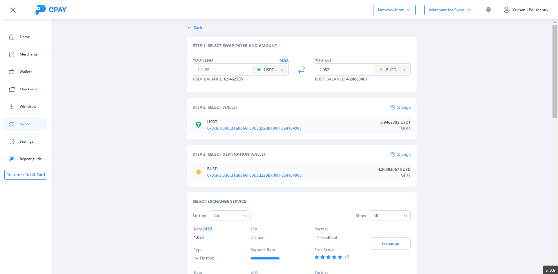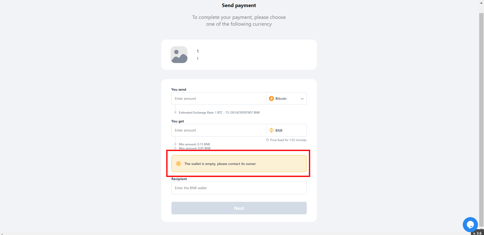 Recipient - the wallet to which the purchased funds are sent. When you enter it, the fixed price is also updated.