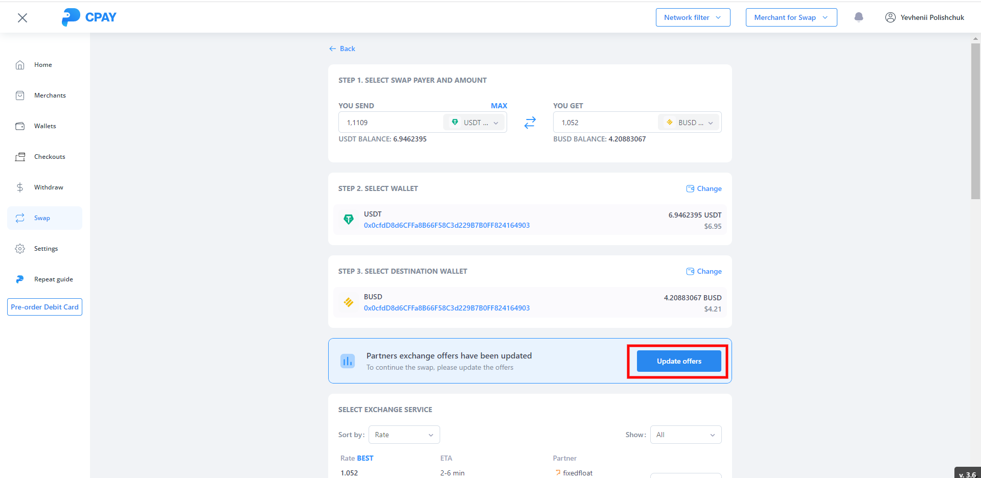 Added a "Update offers" button to get up-to-date data on partners: