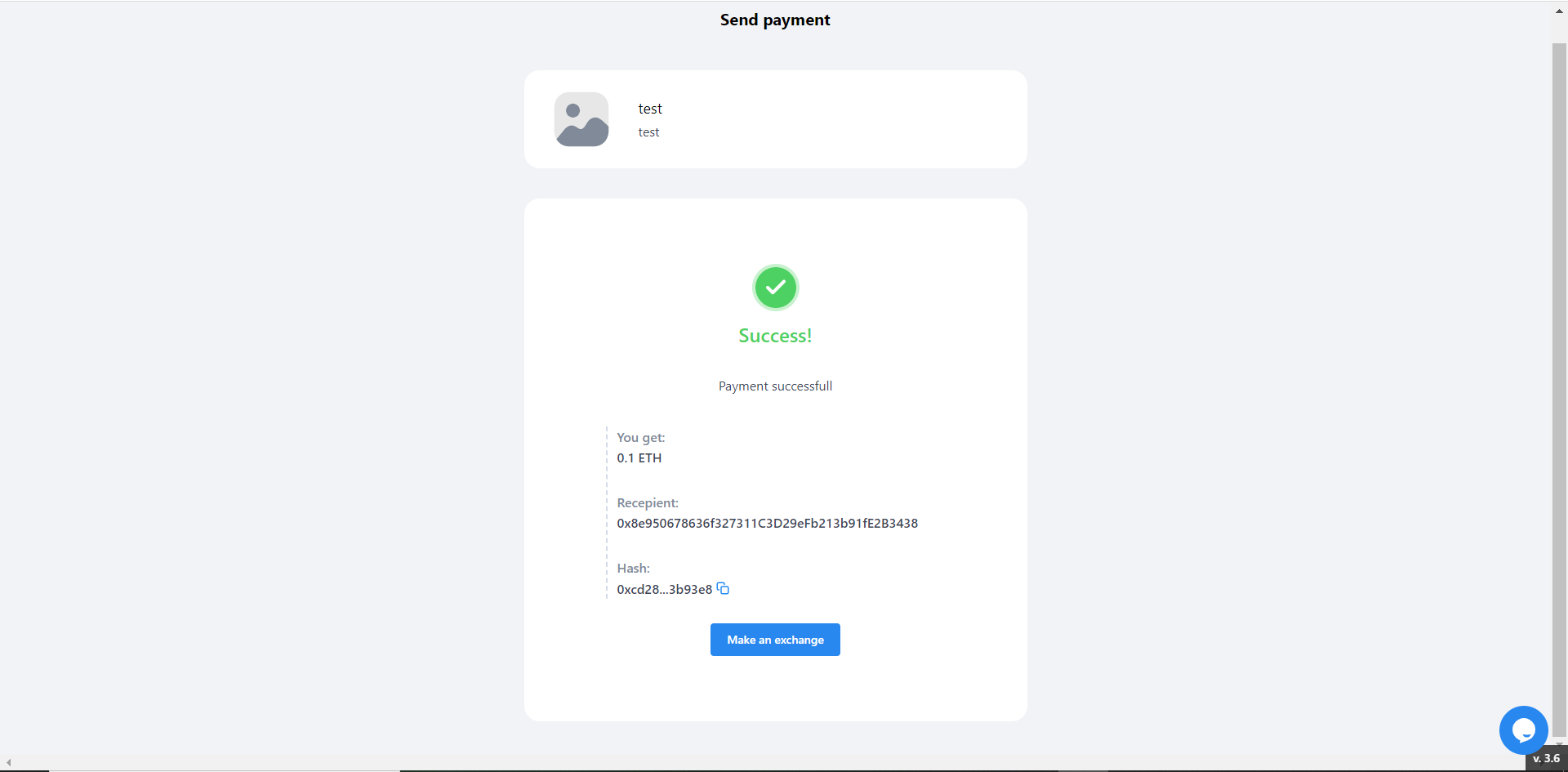 Make an exchange - return to payment widget.