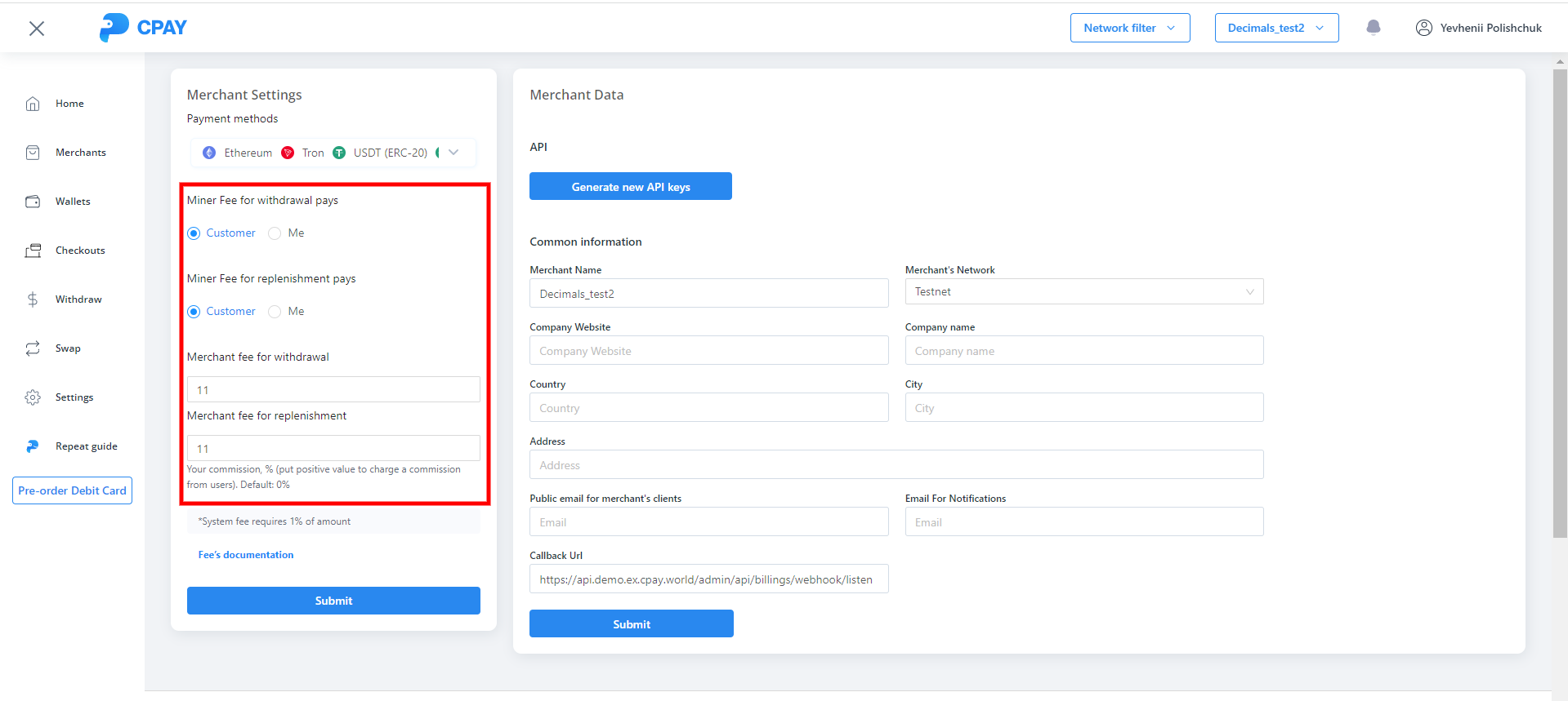 5) Added the ability to separate Miner Fee and Account Fee for replenishment and withdrawal