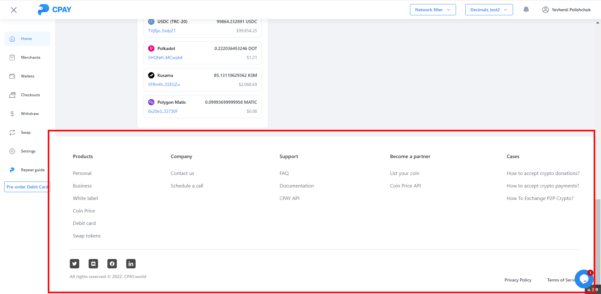 6) Added footer inside user account