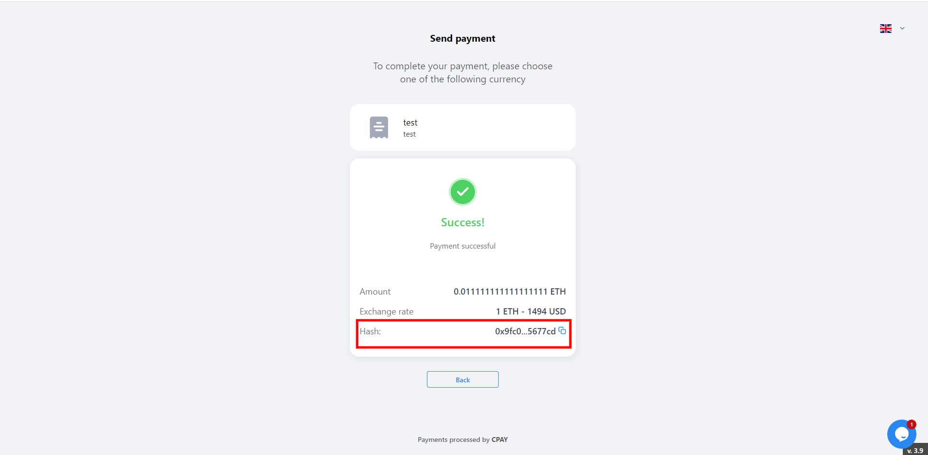8) Added transaction hashes for the payment widget on all types of checkouts