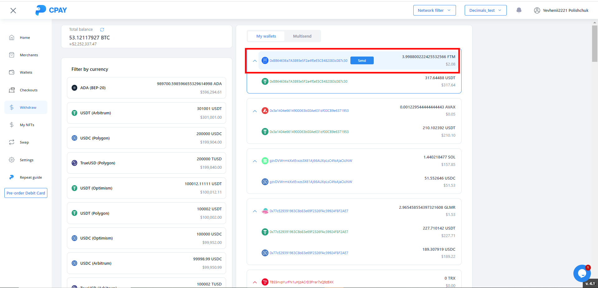 3) Added new blockchain - Fantom with FTM currency and USDT token