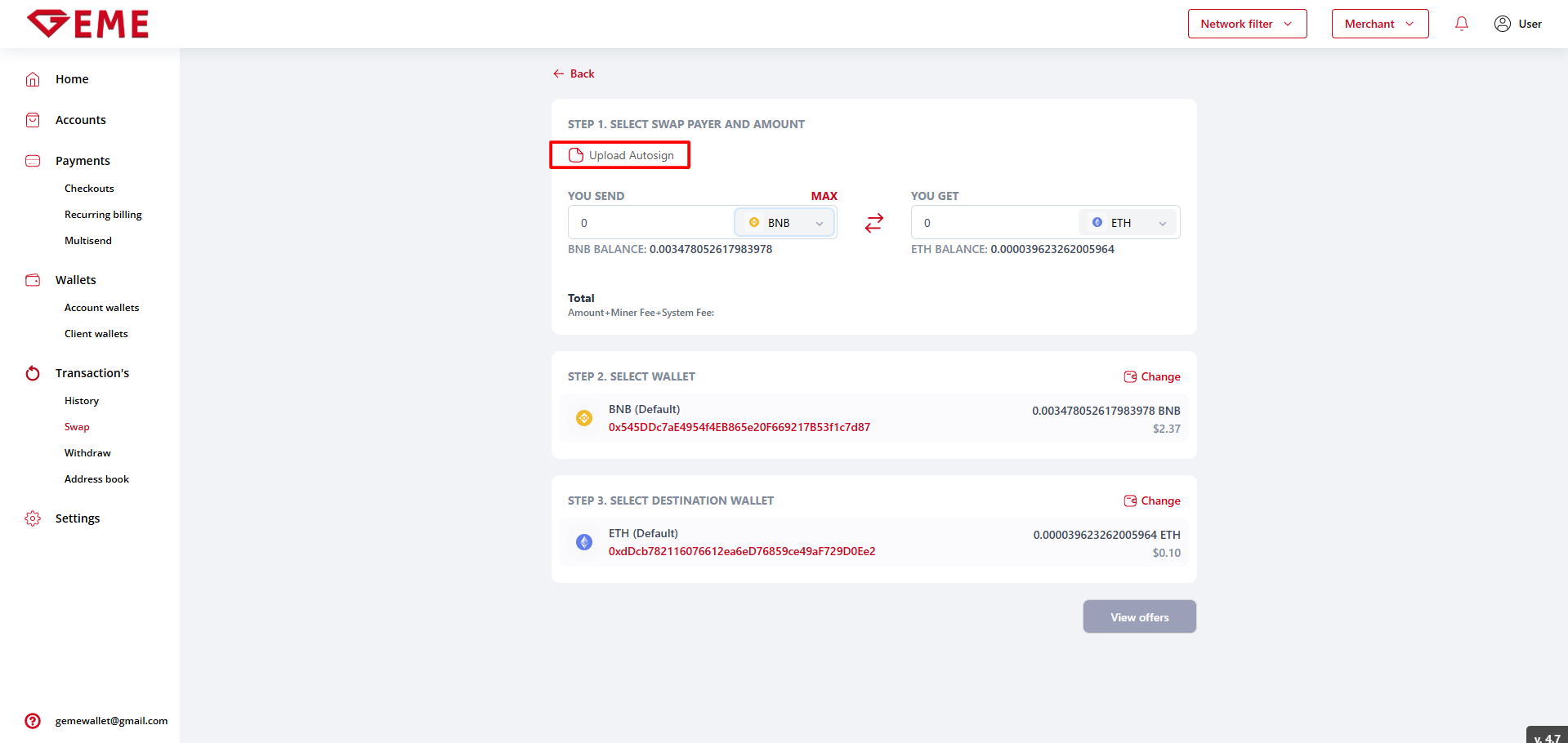 - Auto-swap - will not work, since at the moment the system itself creates a transaction for withdrawing the exchanged currency after the currency specified in the auto-swap rule has arrived at the account's wallet address.