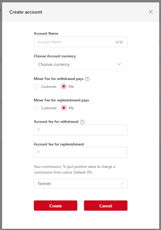 Account Fee for withdrawal pays - the choice of who pays the Miner Fee for sending funds from the client's wallet to any other wallet.