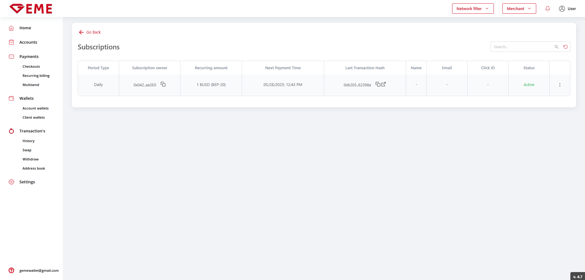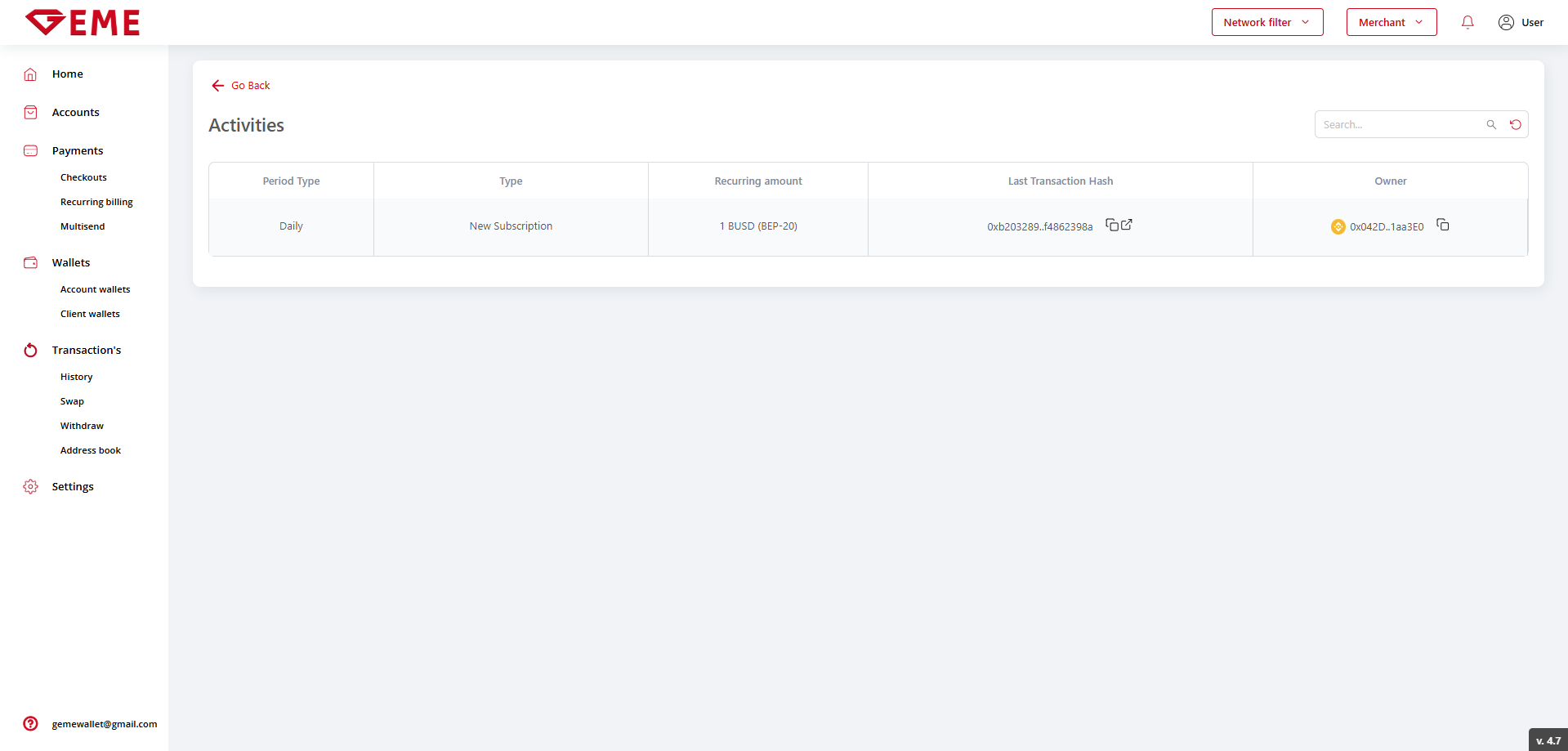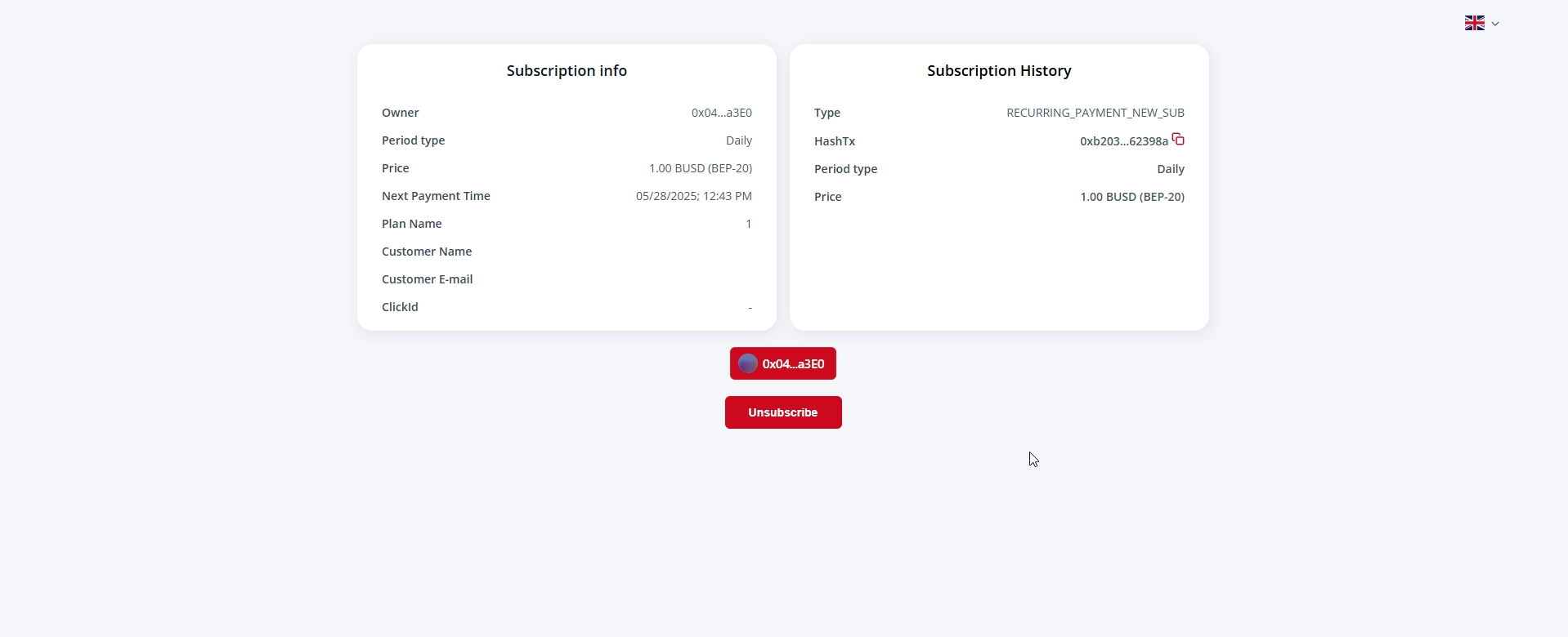 Recurring billing is a payment model used when a subscription business charges a customer's crypto wallets for products or services on a regular billing schedule.