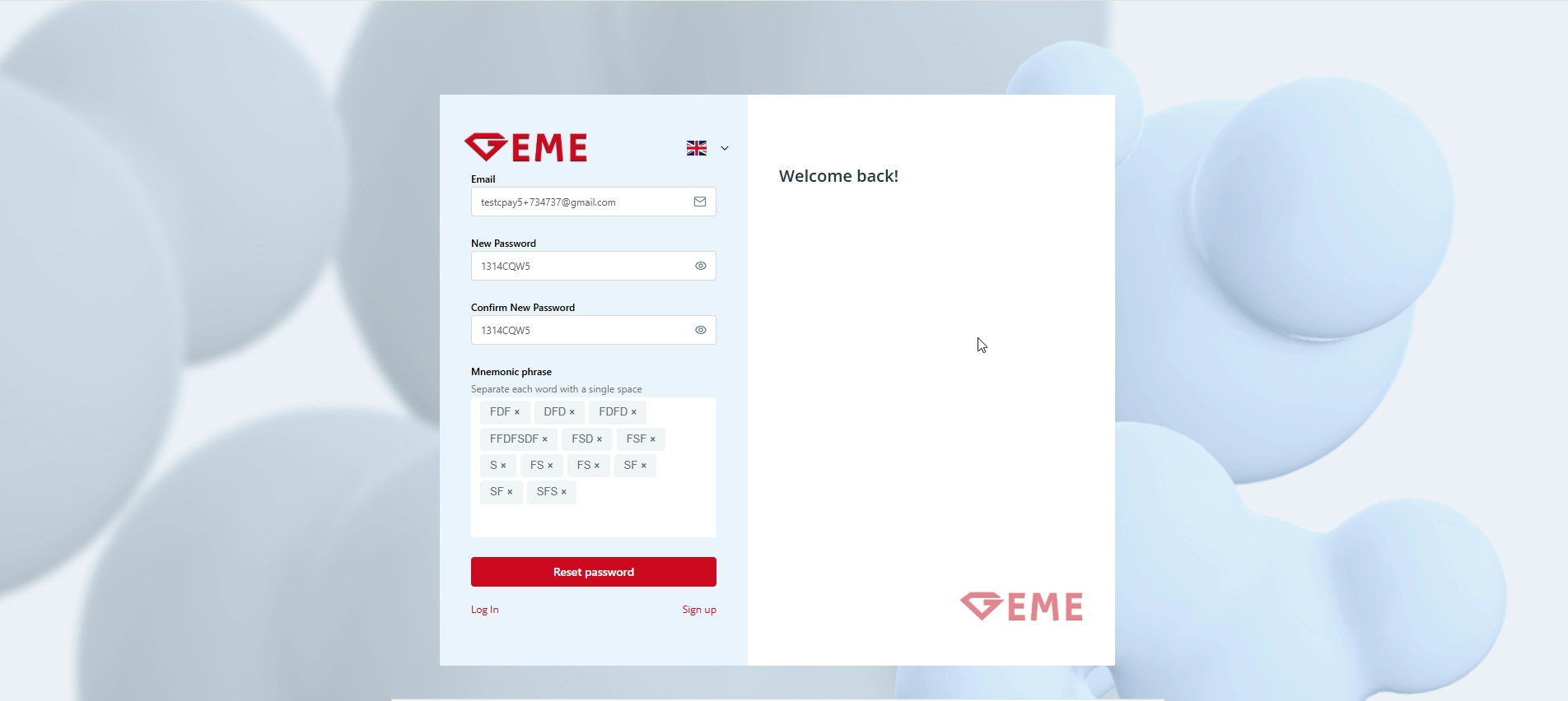 Also you can reset password through Mnemonic phrase. You should click on the "Reset password" button on the password recovery form.