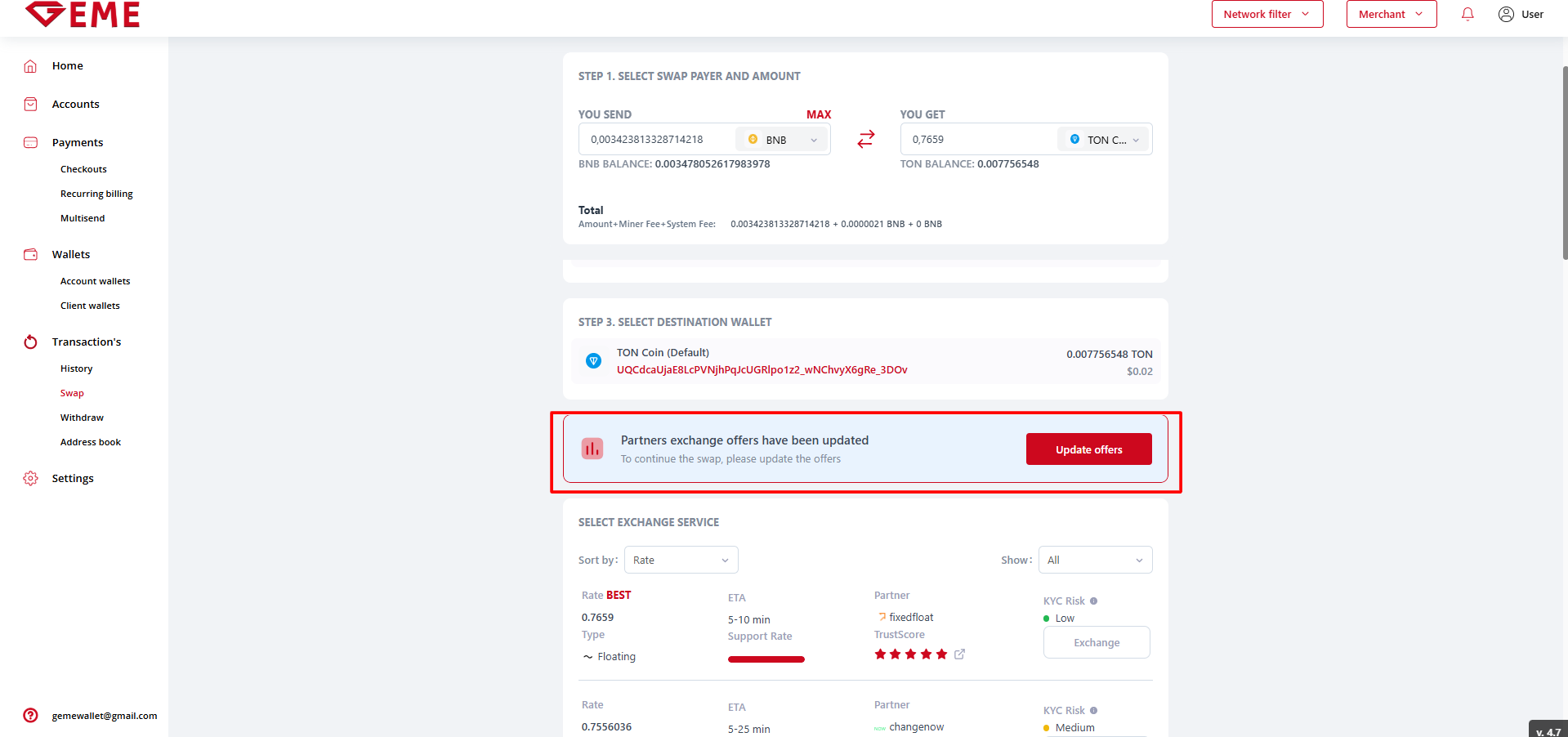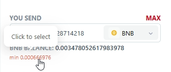 - There is a limit on the minimum swap amount, if you entered an amount less, then you will be offered the minimum possible swap amount that you can choose, after which this amount will be transferred to the field.