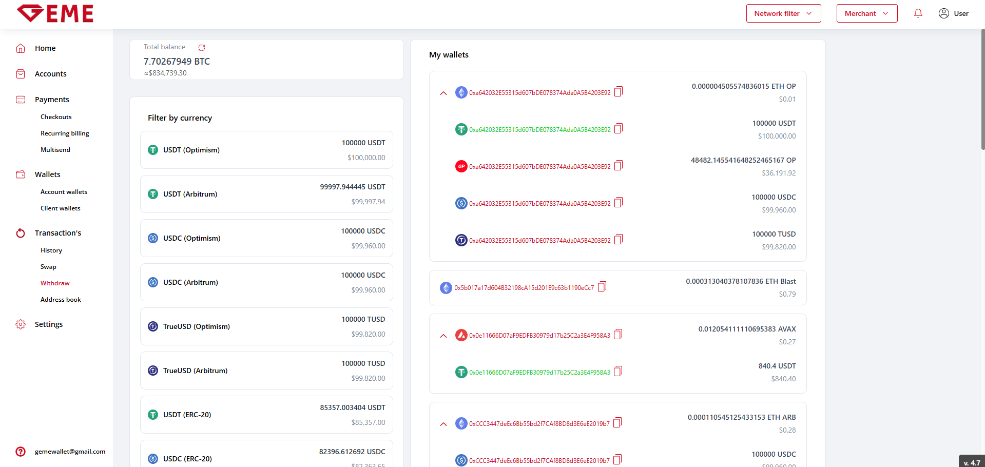 My wallets - wallets only with funds.